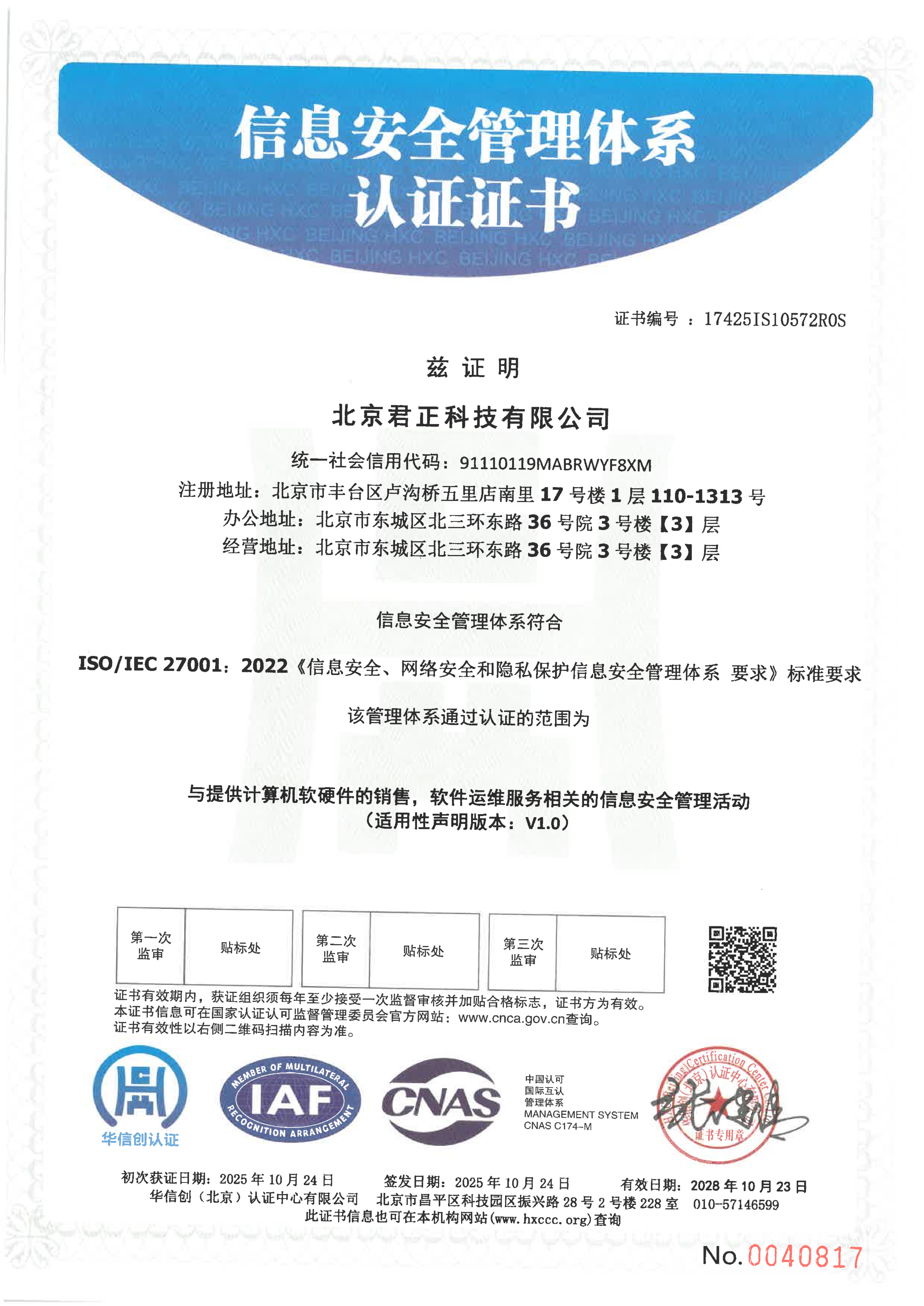 北京君正科技有限公司成立于2022年,总部位于北京,是一家专注于网络安全与人工智能应用开发的高新技术企业。公司以“智能驱动安全,科技赋能未来”为使命,致力于为能源、医疗、教育、运营商、企业等行业客户提供端到端的一站式网络安全解决方案与AI应用开发服务。